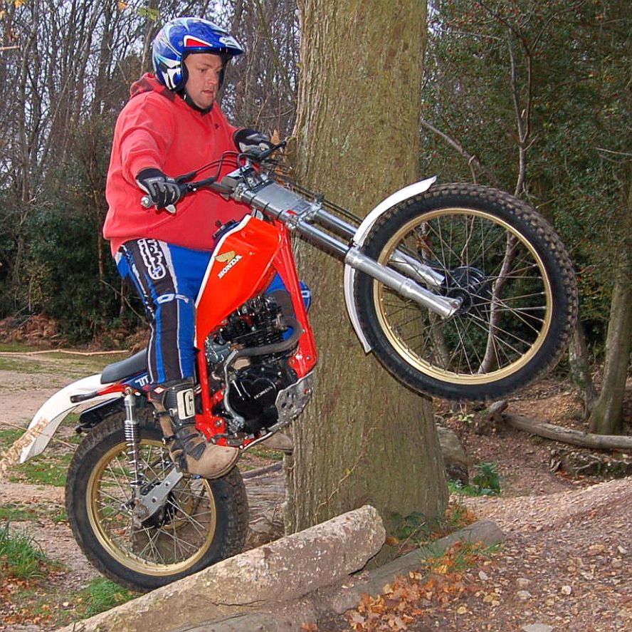 The bike is based around a stock TLR chassis, which has been modified to our very latest specification, and provides far better handling than the stock frame, which seems more suited to trail rather than trials riding! We have already tested a pair of the completely new Mk5 Falcon trials shocks on the bike, and these complement the changes we have made to the frame very well.