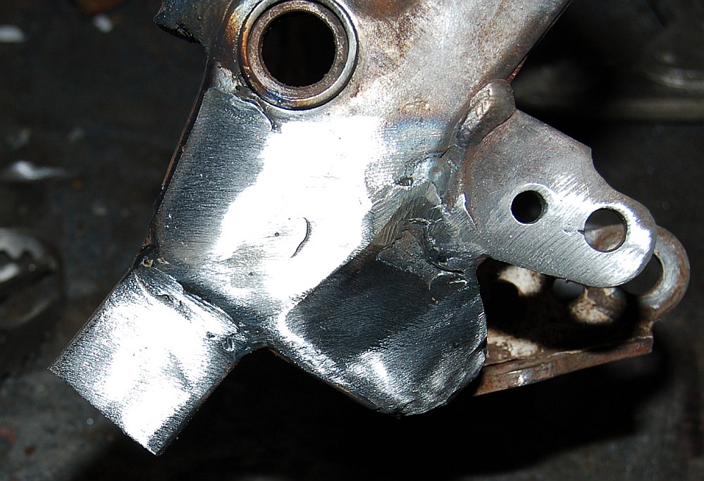 Repair sections must then be carefully welded into the frame, with attention being paid to avoid undue distortion and to ensure the weld is a very good one, as failure here could obviously have very serious results. When the repair sections have been fitted, its a good idea to linish the welded areas with a medium grit flap wheel. Next step is to weld 2 lengths of 5mm mild steel strip onto the frame, as shown in the picture.